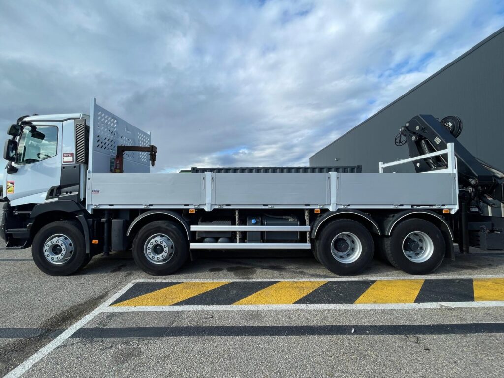 Le camion porteur Renault Trucks 8×4 plateau grue est conçu pour les chantiers et le transport de charges lourdes nécessitant manutention et levage. Avec sa motorisation de 440 ch et sa configuration 8×4, il allie puissance, robustesse et polyvalence.